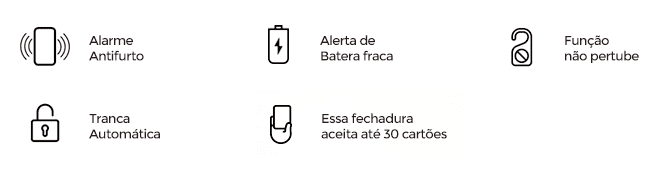 Conta com alarme contra arrombamento, que é acionado após 5 tentativas negadas de abrir a fechadura ou quando ocorre violação.